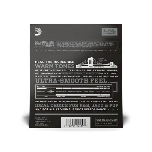 D'Addario Chromes Flatwound Bass String Set Long Scale - 4-String 50-105 Medium ECB82