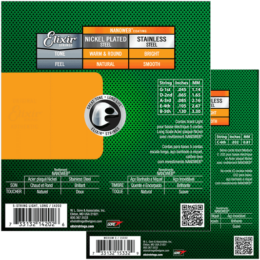Elixir NANOWEB Coated Nickel Plated Steel Bass String Set Long Scale - 6-String 32-130 Medium 14202+15332