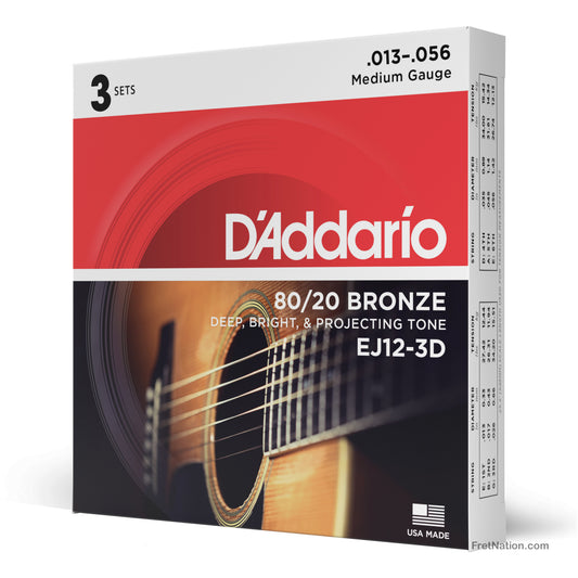 D'Addario 80/20 Bronze Acoustic Guitar 3-Pack - 6-String 13-56 Medium EJ12-3D