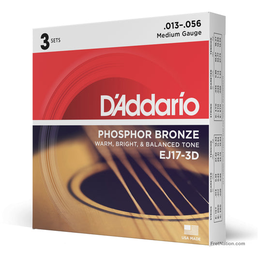 D'Addario Phosphor Bronze Acoustic Guitar 3-Pack - 6-String 13-56 Medium EJ17-3D