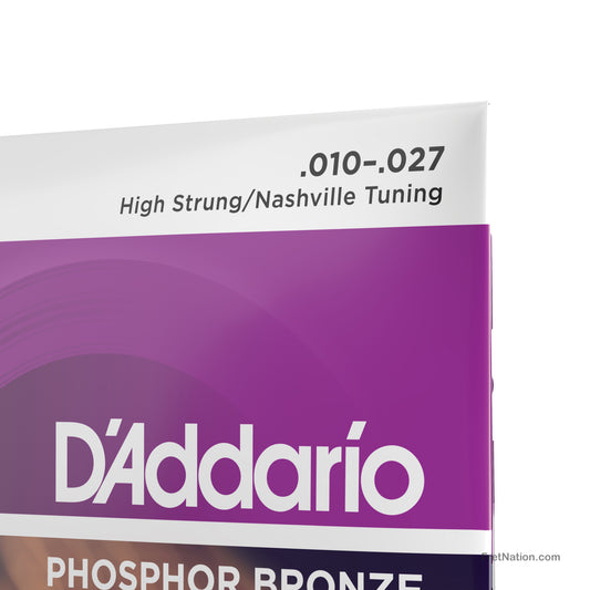 D'Addario Phosphor Bronze Acoustic Guitar Strings - 6-String 10-27 High Strung Nashville EJ38H