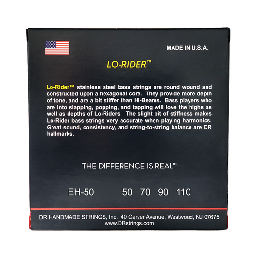 DR Lo-Rider Stainless Steel Electric Bass Strings Long Scale Set - 4-String 50-110 Heavy EH-50