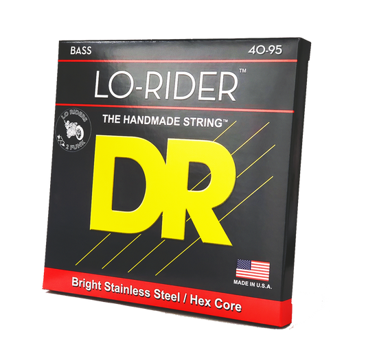 DR Lo-Rider Stainless Steel electric bass strings are round wound on Hexagonal Cores. The Lo-Rider electric bass strings provide more depth of tone, and are a bit stiffer than Hi-Beams. Bass players who are into slapping, popping, and tapping will love the high end and depth of DR Lo-Rider electric bass strings. The slight bit of stiffness makes Lo-Rider bass strings very accurate when playing harmonics. Lo-Rider strings have great consistency, and great string-to-string balance, all of DR Handmade Strings hallmarks.