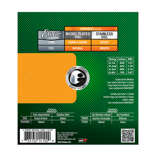 Elixir NANOWEB Coated Nickel Plated Steel Bass String Set Long Scale - 4-String 50-105 Medium 14102