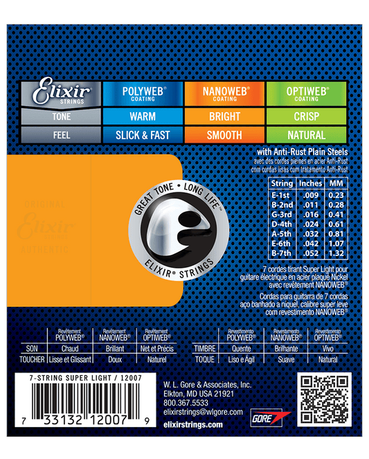 Elixir NANOWEB Electric Guitar 7-String Set - 09-52 Super Light 12007
