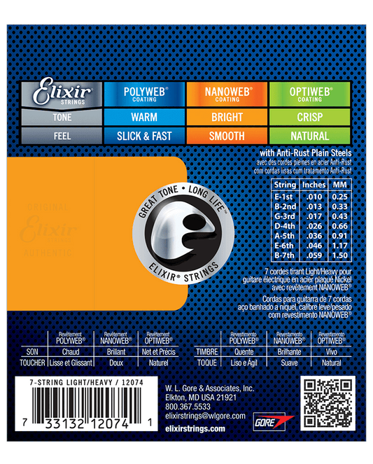 Elixir NANOWEB Electric Guitar 7-String Set - 10-59 Light/Heavy 12074