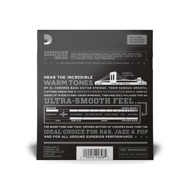 D'Addario Chromes Flatwound Bass String Set Super Long Scale - 4-String 40-095 Super Light ECB80SL
