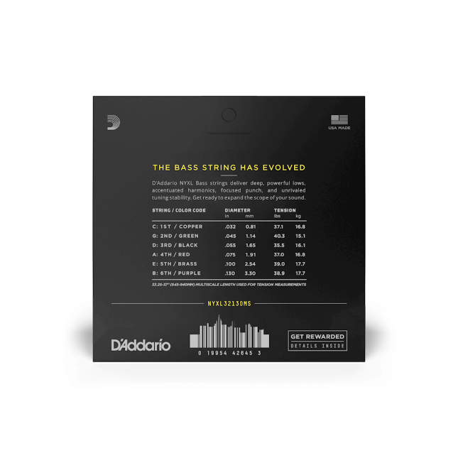 D'Addario NYXL Nickel Wound Bass String Set Multi Scale - 6-String 32-130T NYXL32130MS