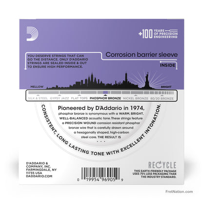- Phosphor Bronze wrap wire provides tried-and-true D’Addario acoustic tone, with beautiful balance and warmth suitable for all musical genres.