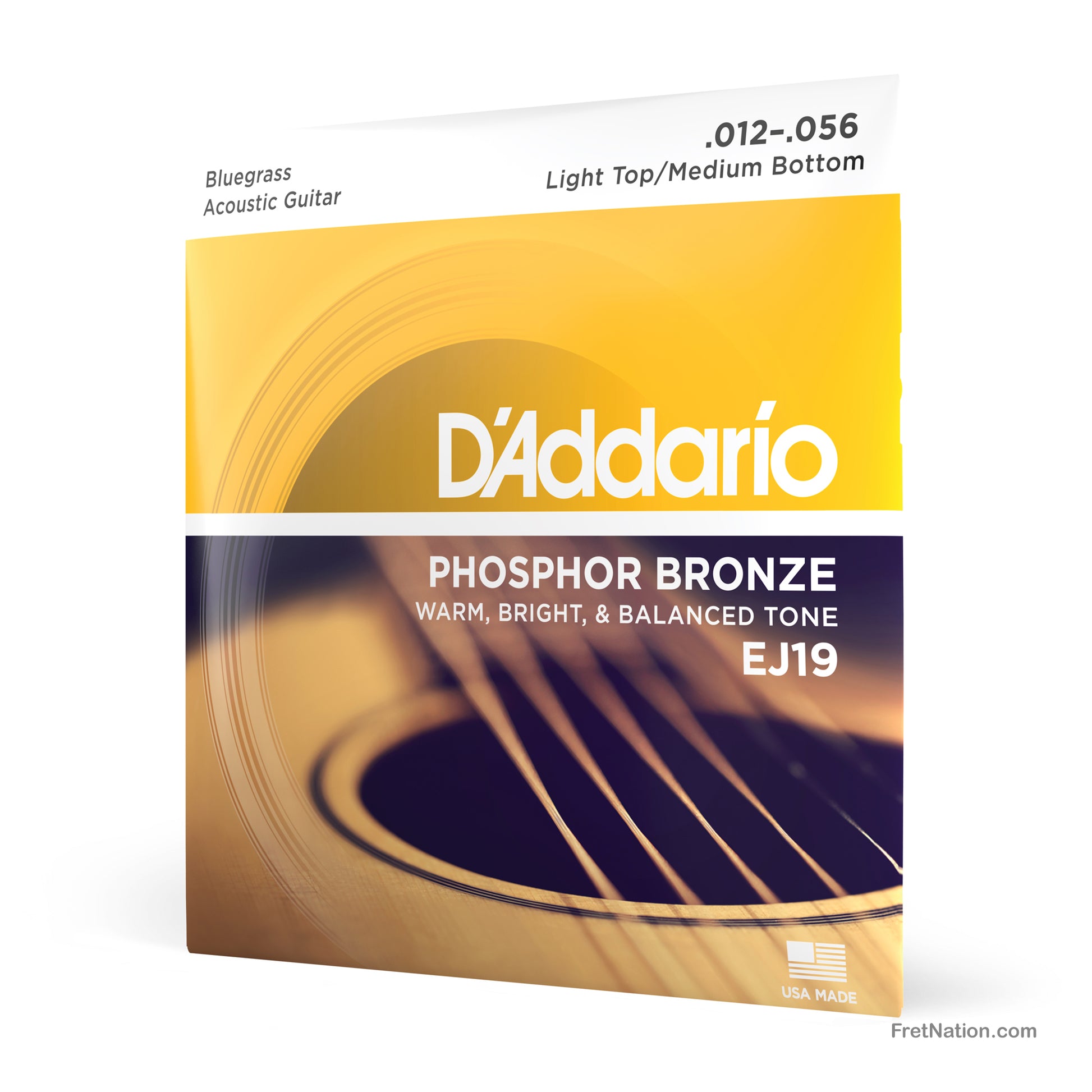D'Addario Phosphor Bronze Acoustic Guitar Strings - 6-String 12-56 Bluegrass EJ19