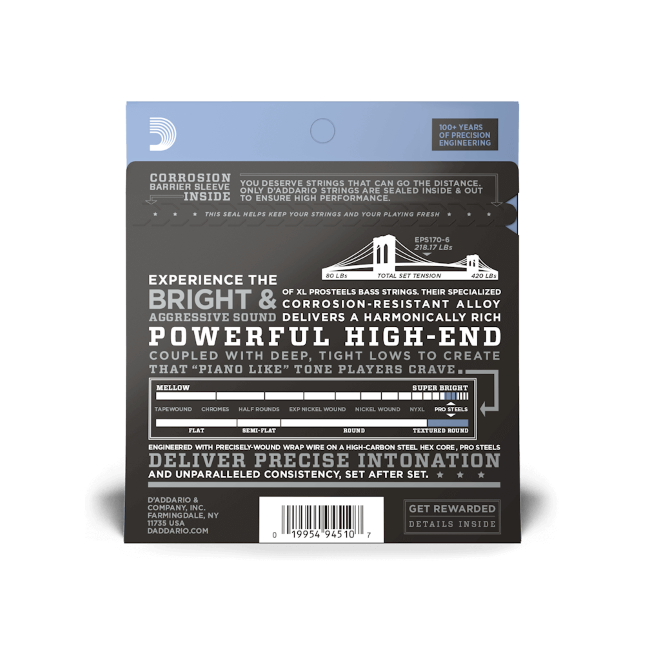 D'Addario ProSteels Stainless Steel Round Wound Electric Bass Strings Long Scale Set