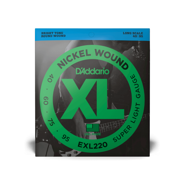 D'Addario Nickel Plated Steel Round Wound Electric Bass Strings Long Scale Set - 4-String 40-95 EXL220 Super Light