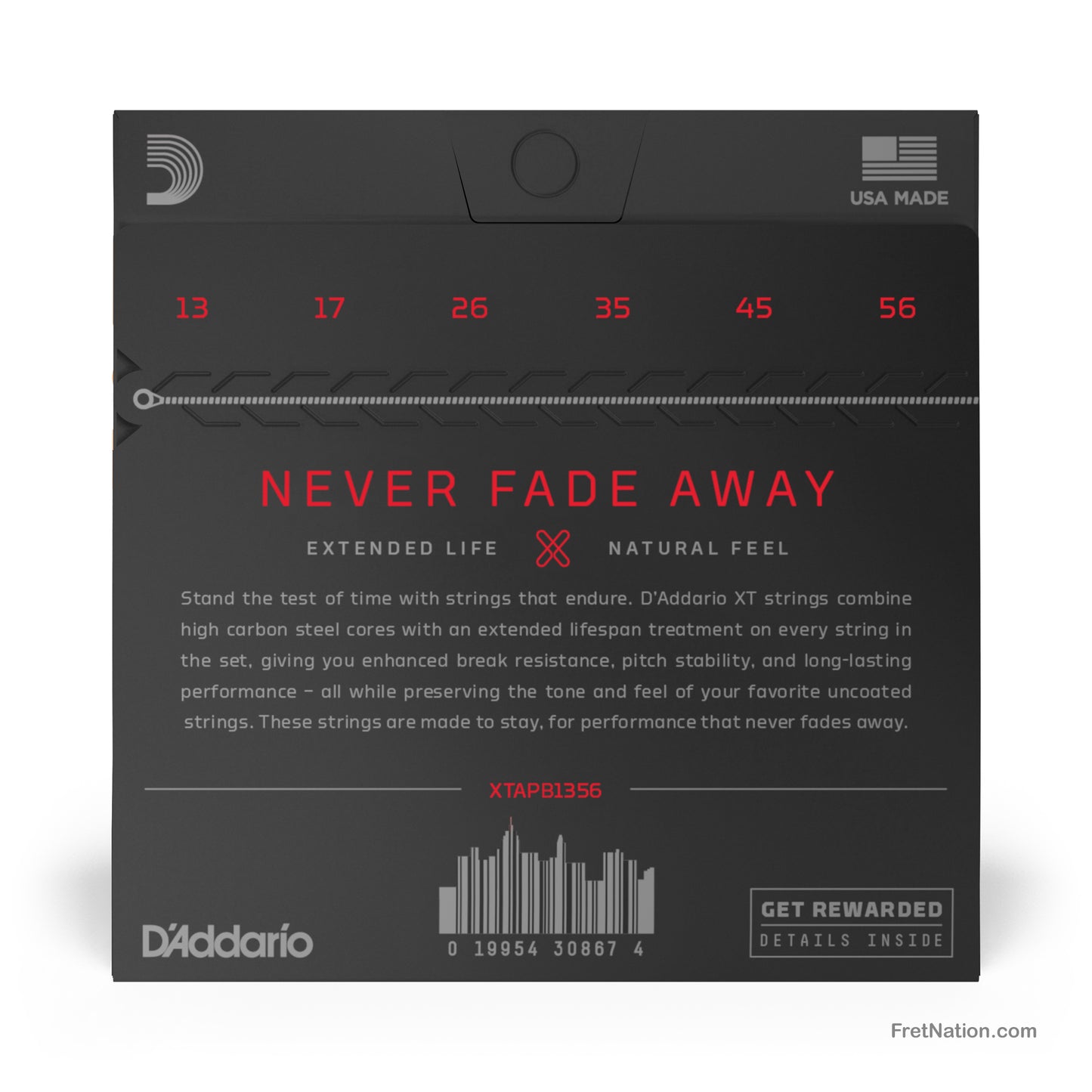 Since D'Addario introduced Phosphor Bronze acoustic guitar strings in 1974, they've been synonymous with warm, well-balanced tone. XT Phosphor Bronze offers that and more, boasting enhanced break resistance, better pitch stability, and longer life than D'Addario's standard phosphor bronze strings. The XT coating delivers advanced corrosion resistance, while still retaining the warm tone and natural feel of the uncoated string. Beneath the coating, these XT acoustic strings are constructed with a NY Steel core, phosphor bronze wrap wire, and Fusion Twist technology, affording tonal versatility with added resilience, excellent for a wide range of acoustic styles. This 13-56 Medium gauge set provides maximum volume and projection, with more tension and resistance.
