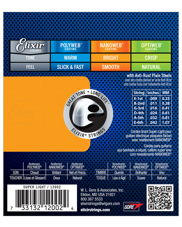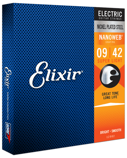 Elixir Electric Nickel Plated Steel Strings with NANOWEB Coating deliver the presence, punch, and personality of traditional electric guitar strings but with extended tone life that players have come to expect from Elixir Strings.