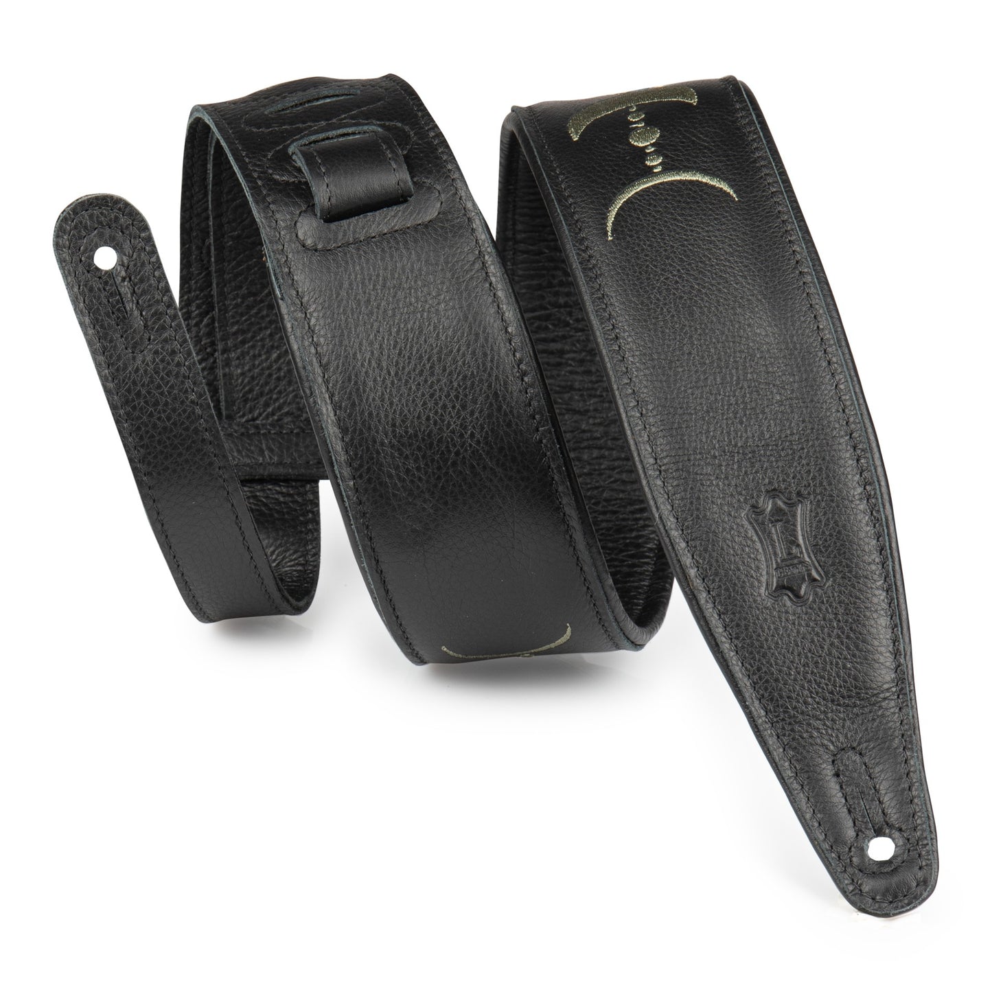Levy's Black Padded Garment Leather w/ Moon Phases 2.5" Guitar Strap - MG317MP-BLK-GRN