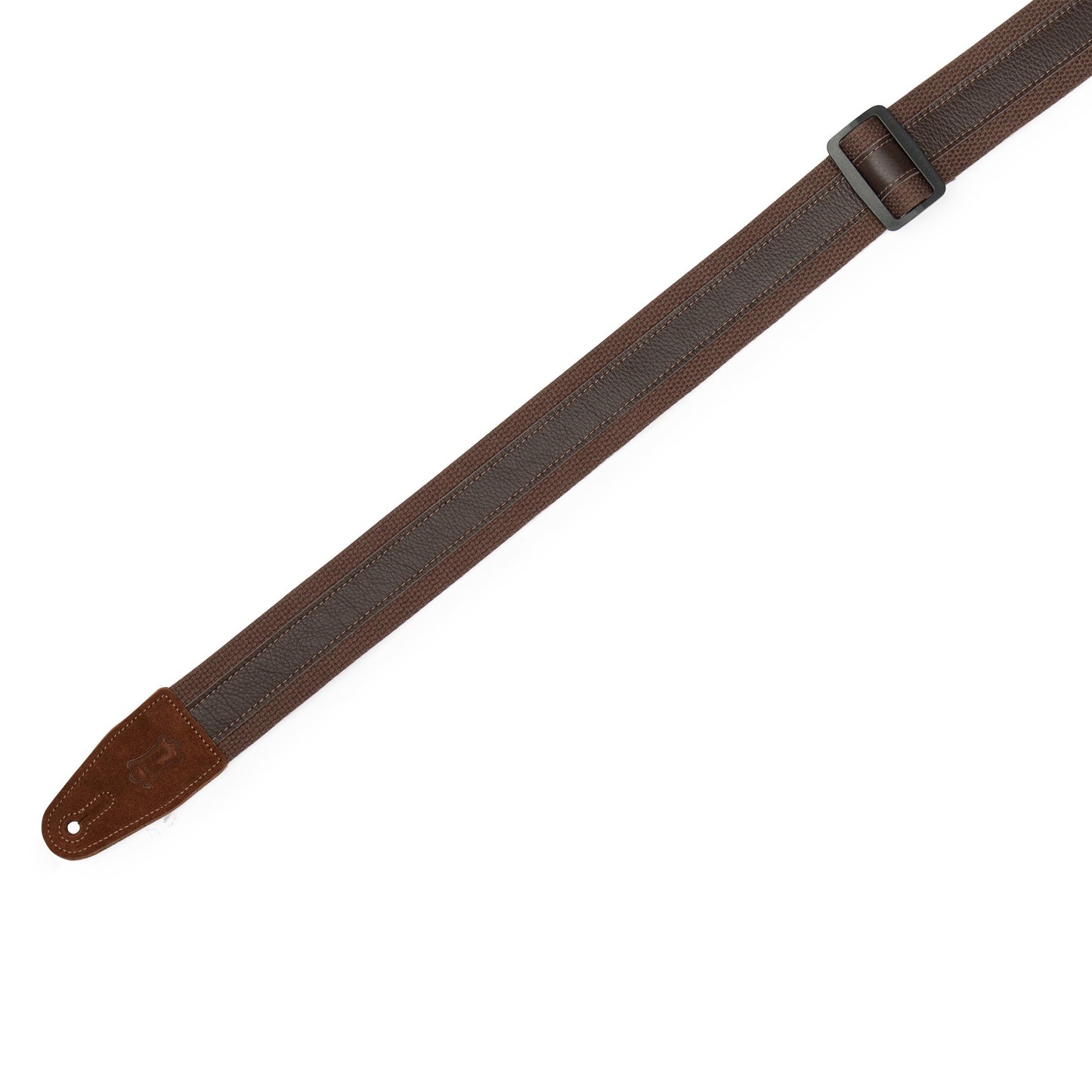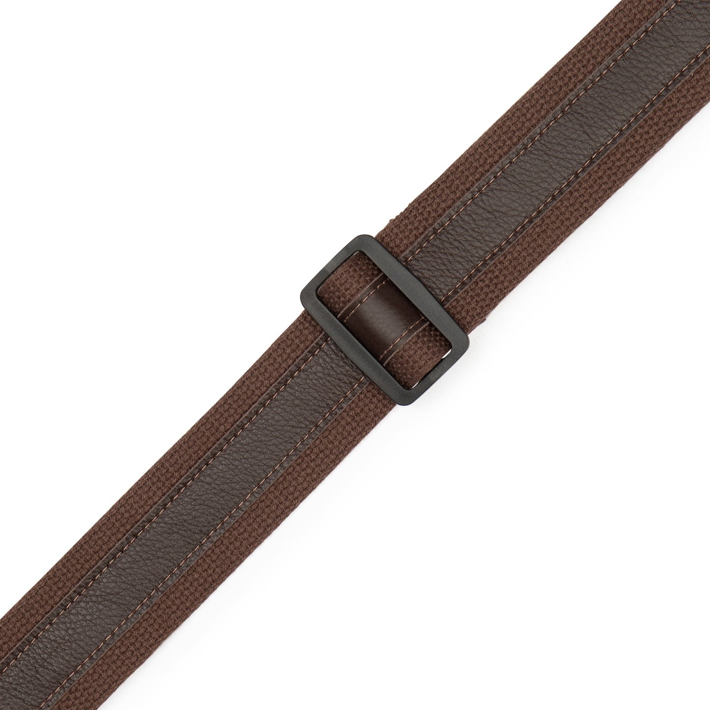 Levy's Cotton w/ Dark Brown Leather Stripe, Suede Ends 2" Guitar Strap - MC2CG-BRN-DBR