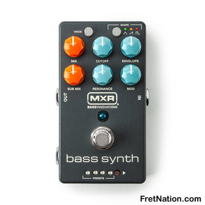 Whether you’re replicating pop hits in a cover band, holding down the low end at church, or touring the world, this pedal gives you instant synth bass magic. Get down on the one with the MXR Bass Synth.